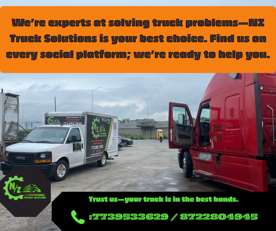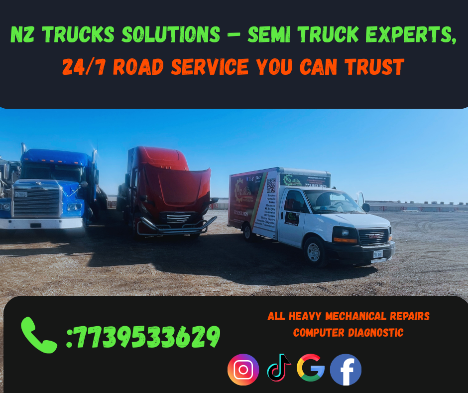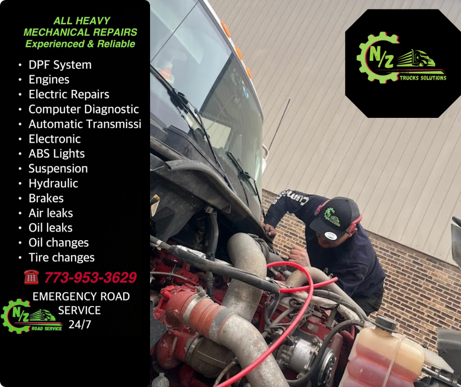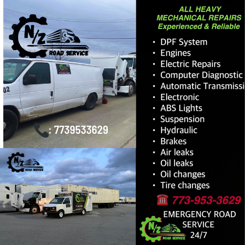 NZ Road Service delivers 24/7 mobile semi‑truck road service and diesel mechanic support across Chicago, Illinois, Indiana, and Wisconsin. Our certified team comes to you—yard, truck stop, or highway—for on‑site tractor‑trailer repair, computer diagnostics, DPF system service, engine, transmission, brake and air‑leak fixes, plus hydraulic & electrical repair. We also handle emergency tire changes, jump starts, oil changes, battery replacement, fleet maintenance, and DOT inspections. Fast response, honest pricing, top‑quality parts—everything to keep your rig rolling and your business on schedule.